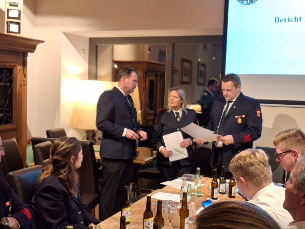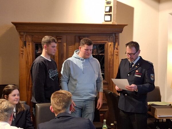 Lennart Ecke und Albert Ecke wurden zu Feuerwehrmännern befördert. Elias Hagemann und Robin Behler wurden zu Oberfeuerwehrmännern befördert.