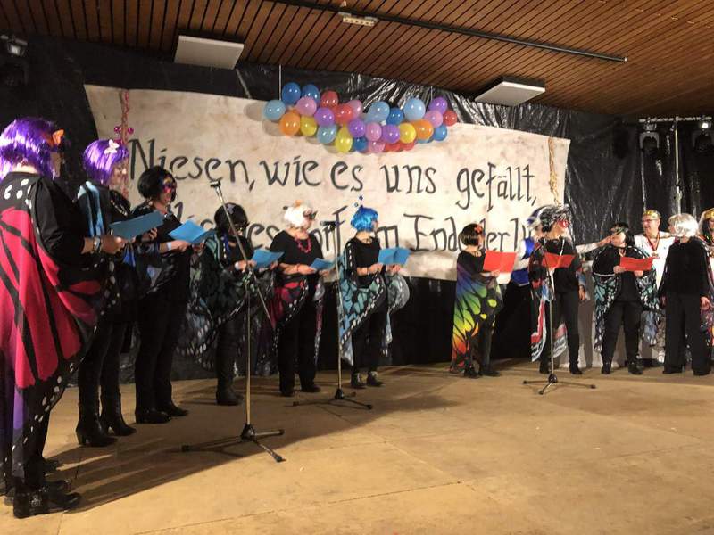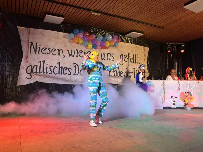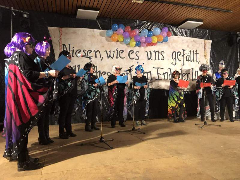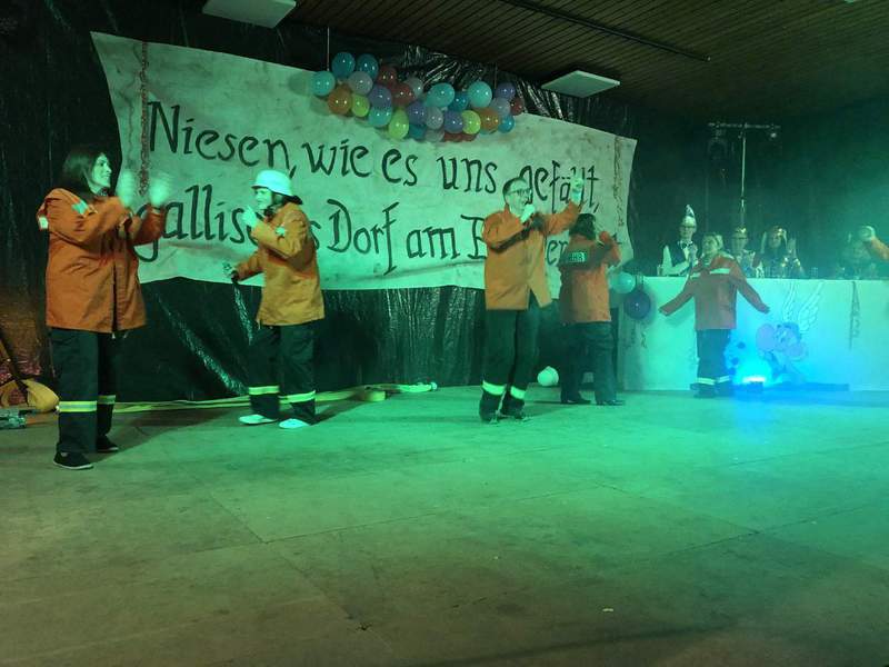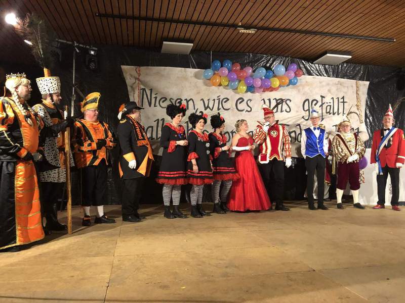 Die Dorfgemeinschaft Niesen hatte mit den ansässigen Vereinen ein buntes Programm auf die Beine gestellt, an dem sich auch benachbarte und befreundete Karnevalsvereine beteiligten. Unter dem Motto >>Niesen, wie es uns gefällt. Ein gallisches Dorf am Ende der Welt<< fanden sich zahlreiche Gallier und Römer zum Feiern ein. Mit 14 Beiträgen und und rund 80 Mitwirkenden erlebten die rund 300 Närrinnen und Narren am Freitagabend in der Bürgerhalle eine turbulente Karnevalsfeier, die von Sitzungspräsidenten Christoph Köneke souverän moderiert wurde.