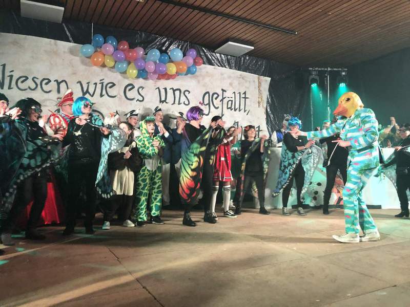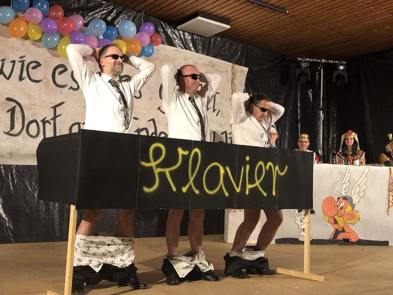 Neben der Funkengarde aus Rösebeck und den Doppelmariechen Lara Karnitz und Franziska Roth von den Karnevalsfreunden Willebadessen boten Maja Rodenberg und Jannika Müller aus Niesen eine atemberaubende akrobatische Performance. Die Feuerwehr brachte sich mit stimmungsvollen Tanzliedern ebenso ein wie die 18 Vlinderupse -Niederländisch für Schmetterlingsraupen-, die Alkohol als Bezahlung für ihre Sangeskunst einforderten. Ein virtuoses Klavierkonzert gaben die >>Eagles<< in einem Sketch ohne Worte. Für ihr Engagement erhielten alle Aktiven auf der Bühne den Sessionsbutton. Musikalisch gab die örtliche Sneeze-Band den Takt an. Am Sonntag kam beim Niesener Kinderkarneval der närrische Nachwuchs groß raus.