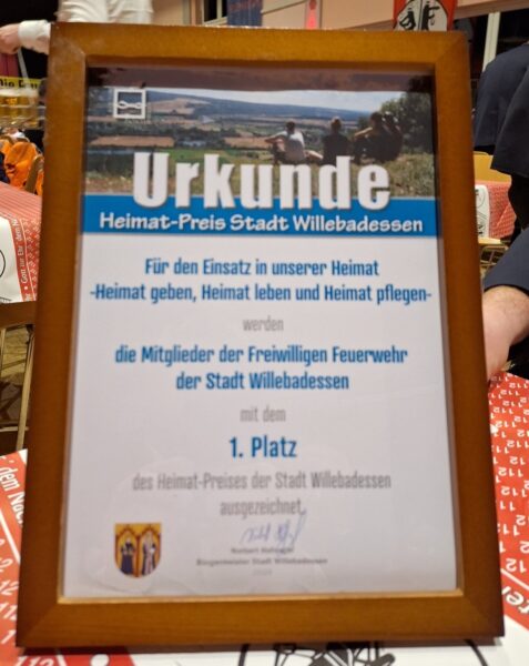 Im Rahmen der Ehrenamtsfeier im Januar 2025 wurde der Feuerwehr Willebadessen der Heimatpreis 2024 verliehen. Dies sollte nun gefeiert werden.