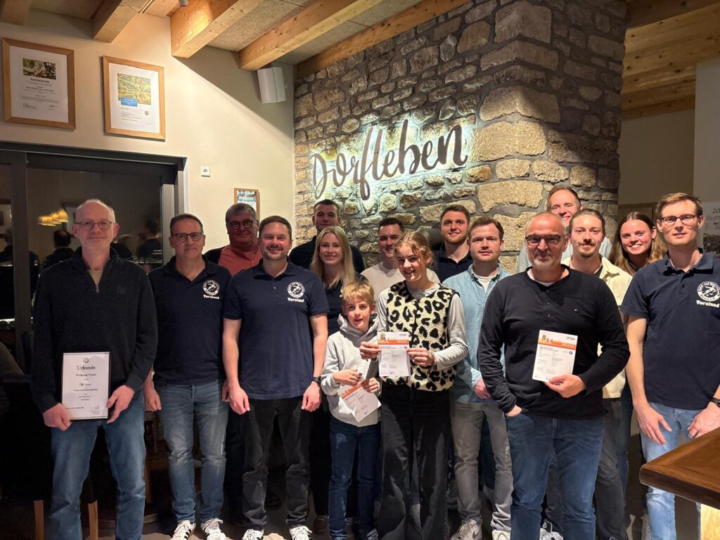 Der Vorstand mitsamt der Geehrten v.l.: Wolfgang Genau (50 Jahre), Matthias Stamm (Sportabzeichen), Wilhelm Quinting (40 Jahre), Simon Henze (2. Vorsitzender), Paul Rudkoski (Abteilungsleiter Badminton), Hannelene Quinting (Schatzmeisterin), Janosch Peters (Sportabzeichen), Edda Peters (Sportabzeichen), Manuel Gockeln (Schriftführer), Frederik Hagemann (Barkassierer), Uwe Daldrup (Sportabzeichen), Matthias Peters (Sportabzeichen), Tim Arendes (EDV-Beauftragter), Verena Reiermann (Sozialwärtin) und Christoph Mutter (1. Vorsitzender).
