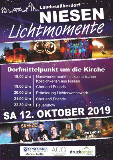 Besser hätte es für die Dorfgemeinschaft Niesen am Samstag bei den »Lichtmomenten 2019« kaum laufen können. Bei Einbruch der Dunkelheit war es nicht nur trocken, sondern auch noch 18 Grad warm. Beste Voraussetzungen für das Lichterspektakel in der Ortsmitte, zu dem 3000 Besucher kamen.