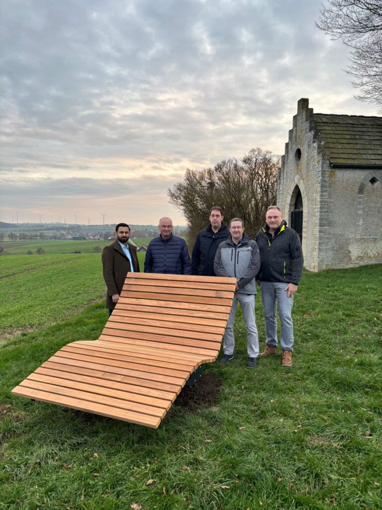 Schon längere Zeit war es der Wunsch der Ortsheimatpfleger in Niesen, an der Donatus-Kapelle auf dem Klusberg in der Gemarkung Döhren zwischen Gehrden und Niesen, eine Wellenbank aufzustellen. Gestern war es dann soweit. Mit der freundlichen Unterstützung der Sparkasse PB-DT-HX, der Vereinigten Volksbank eG und der VerbundVolksbank OWL eG konnte Jens Arens aus Niesen von der gleichnamigen Maschinenbaufirma diese Bank herstellen. Hilfe dabei hatte er durch den Ortsheimatpfleger Dirk Tewes, der sich um die Holzbelattung der Bank kümmerte. Nun steht die drehbare Bank direkt neben der Kapelle. Von dort haben die Wanderer und Besucher der Kapelle, die eine Pause einlegen wollen, einen wunderbaren Ausblick von der Bank über das Nethetal, welches auch gleichzeitig FFH Gebiet ist. Der Stadt- und Ortsheimatpfleger Klaus Geiser bedankte sich bei allen Beteiligten für die Unterstützung und die Herstellung einer solchen Wellenbank.
